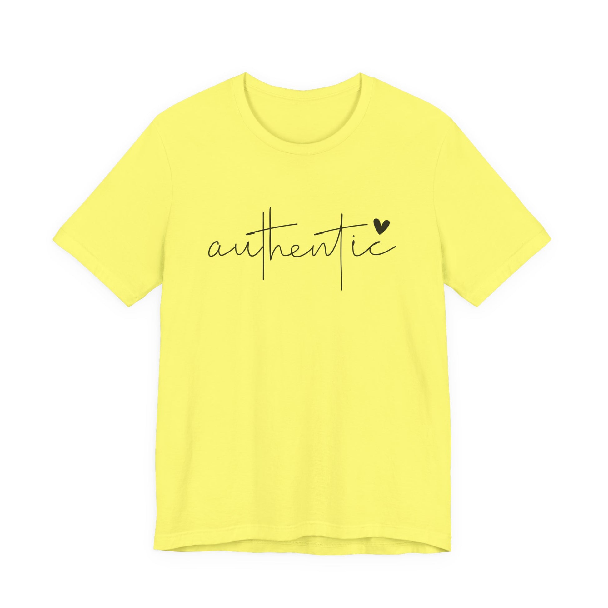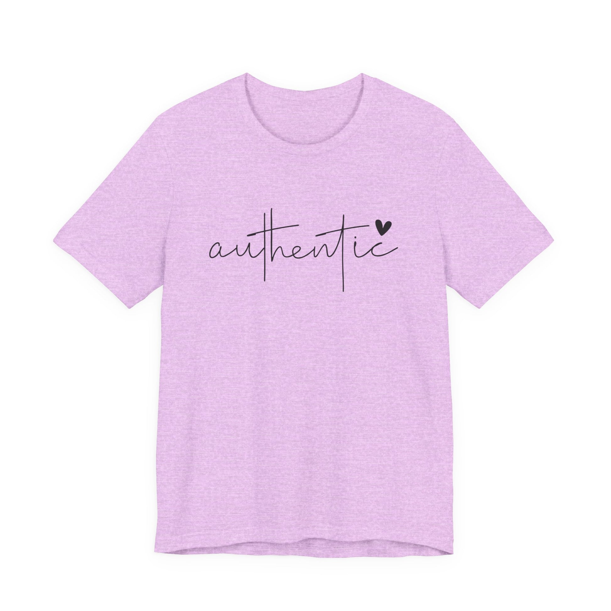 Authentic Script Tee — "authentic" Handwritten Heart Graphic T-Shirt